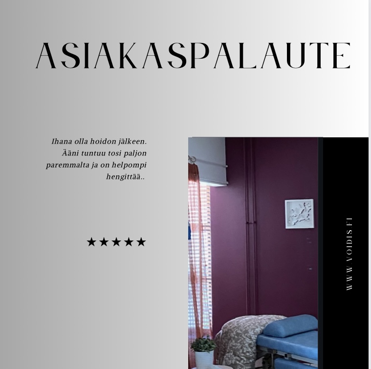 Vastaanotollani VoiceWell-keskuksessa käy suuri määrä ammattilaisia (näyttelijöitä, muusikoita, laulajia, puhallinsoittajia) ja alan opiskelijoita sekä ihan tavallisia äänenkäyttäjiä, hengityksen kanssa kipuilevia ja purentahoitoja tarvitsevia.